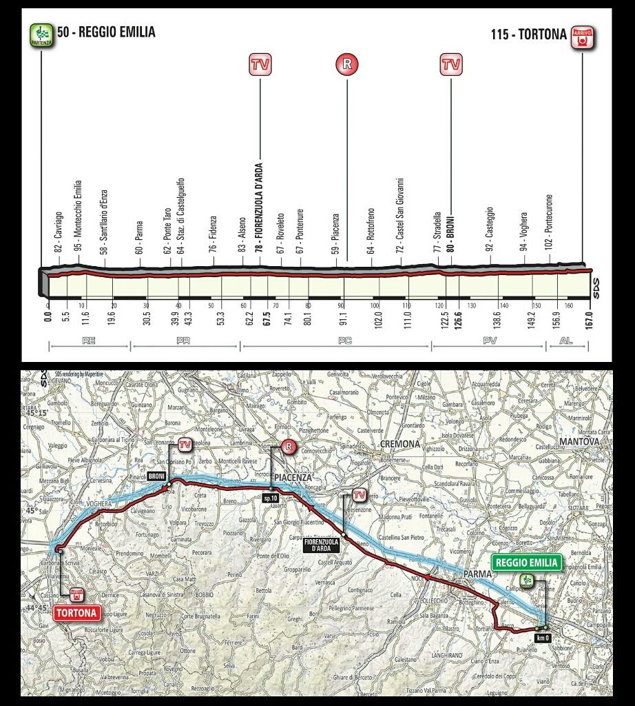La 13a tappa del Giro d’Italia 2017, la Reggio Emilia Tortona di 167 Km chilometri, in Diretta TV dalle 13:05 alle 14:45 su Rai Sport+ HD e dalle 14:45 su Rai 2. Alle 17:45 circa appuntamento con “Processo alla Tappa” su Rai 2 dalle 17:15 presentato da Alessandra De Stefano con Davide Cassani e Alessandro Petacchi.